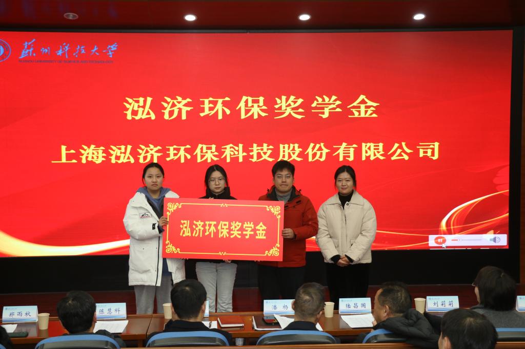 举办2025年度企业奖助学金颁奖仪式。苏州零碳时代科技有限公司董事长陆昌国,苏州市东方环境工程有限公司副总经理陈慧科,苏州格力美特实验室科技发展有限公司财务总监刘莉莉,深圳市欧达尔环保科技有限公司行政人事部门郑雨秋,学校学生工作处副处长崔炜,学生工作处学生资助管理中心主任王可,情色片